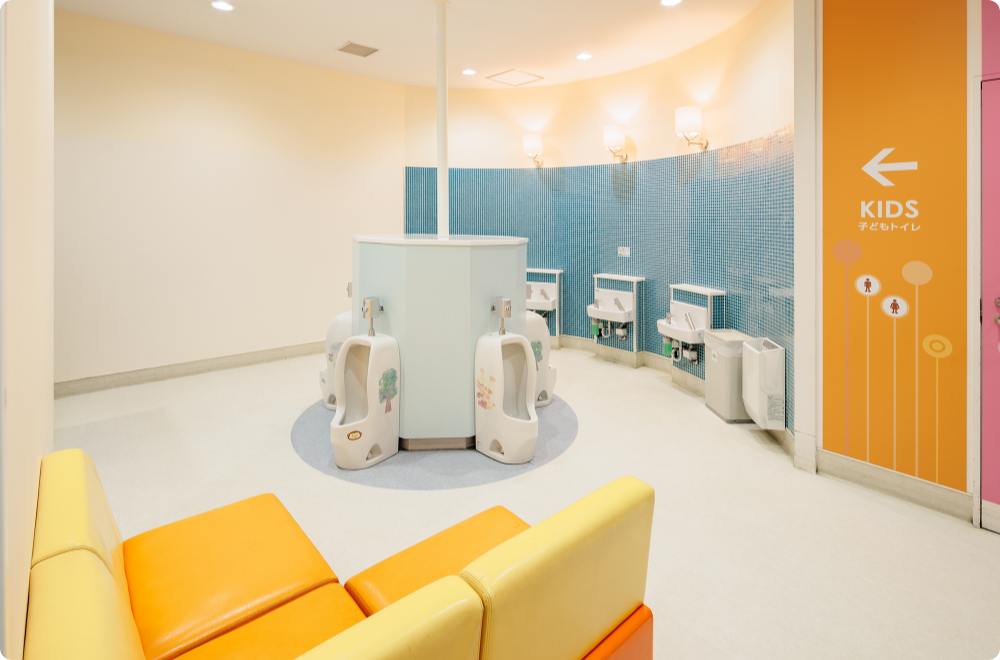 各階のトイレは車椅子で入れるものやオストメイト対応をご用意。さらに乳幼児用トイレや授乳室なども備え、小さなお子様を連れてのショッピングも安心です。