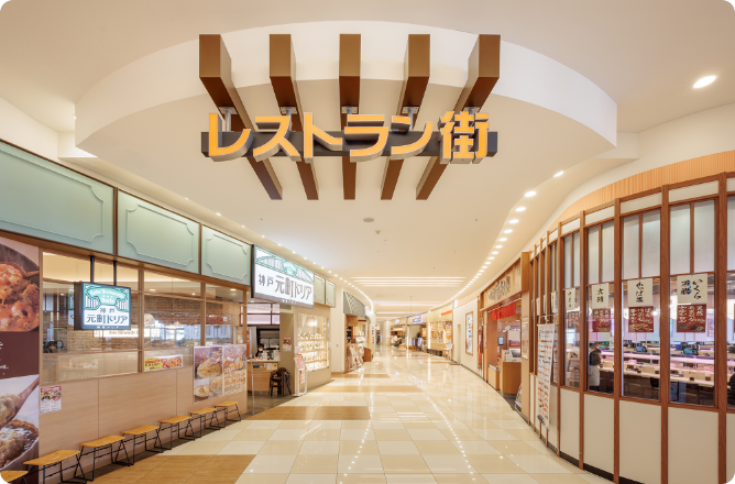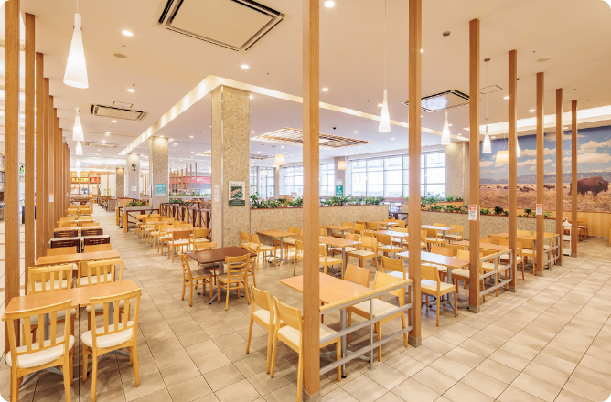 景色を眺めながら、ゆったり食べたい味が楽しめる「フードコート」は全800席もの広さ!小さなお子様連れでも安心のキッズ席もご用意しています。