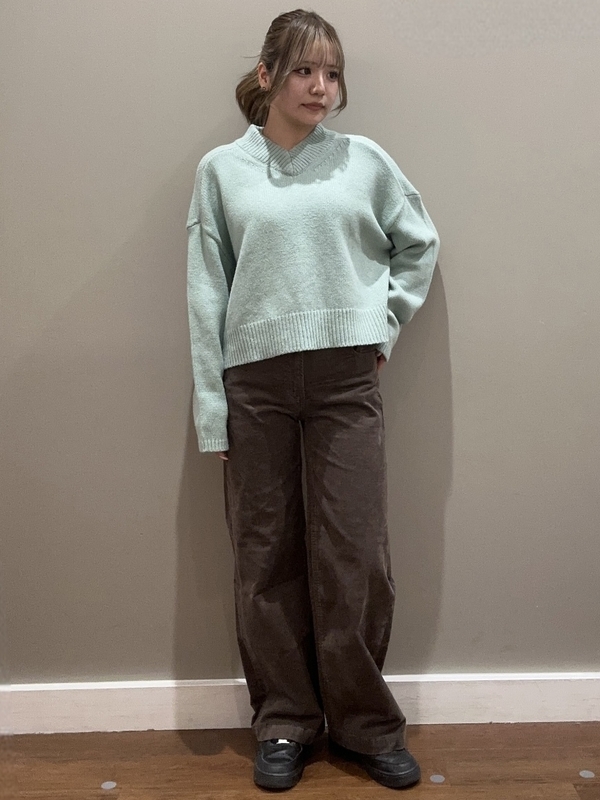 新作のカシミヤニット!Vネックになっていて首元スッキリ見えます!