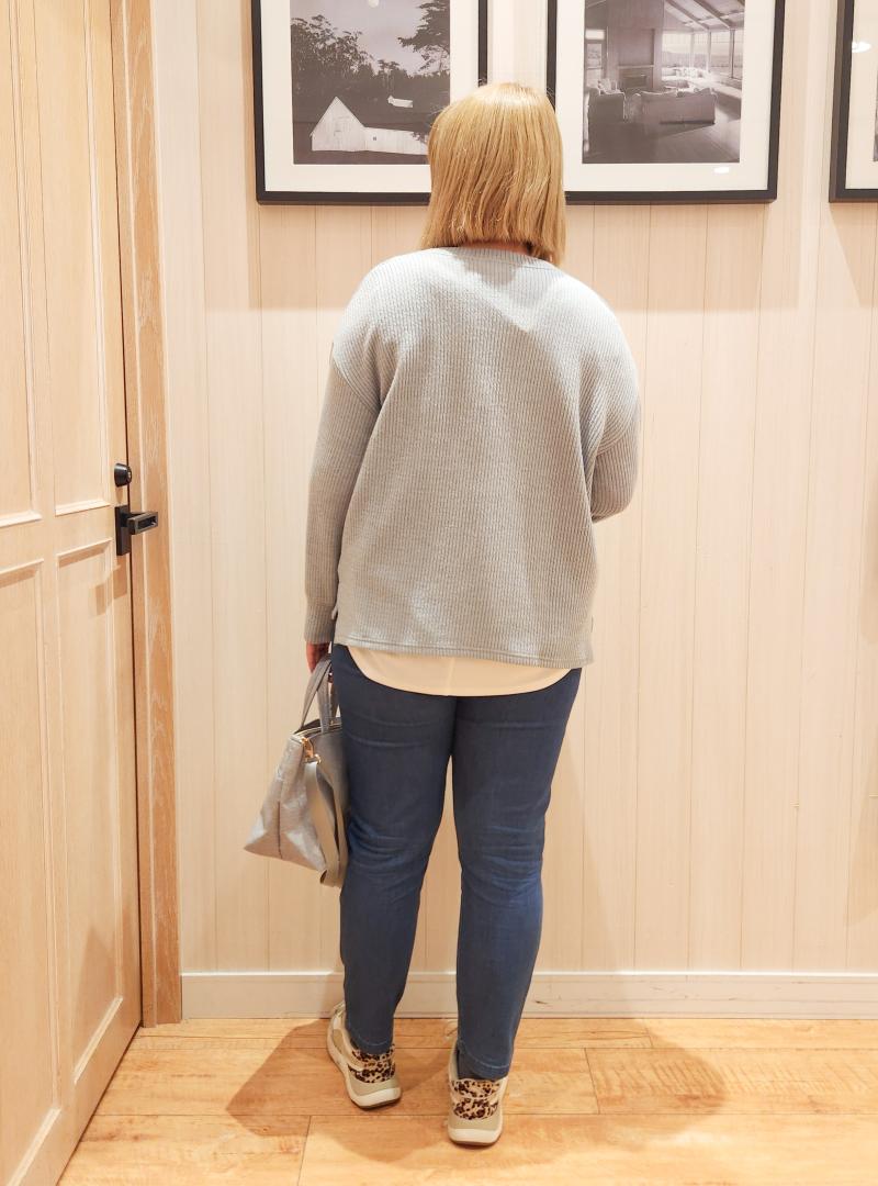 「ちょっとしたお出かけ」を意識したので、ラフなコーディネートにしました。