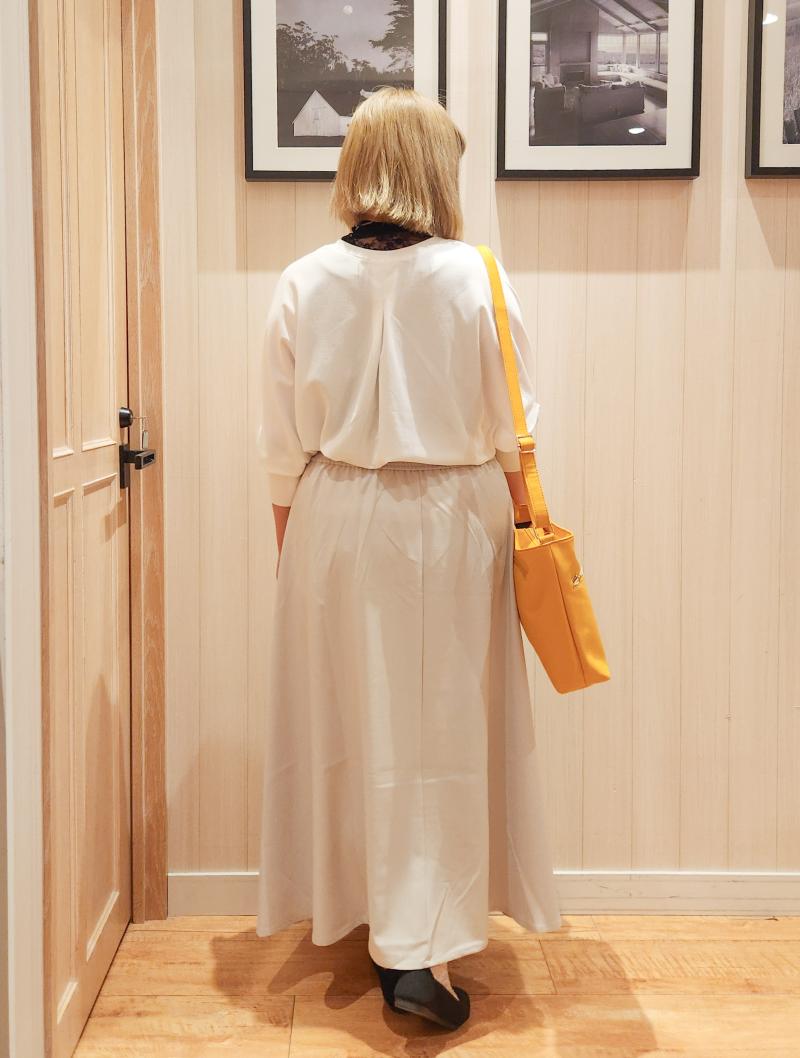 女性らしい印象のコーデだけど、モノトーンなので甘さは無し。