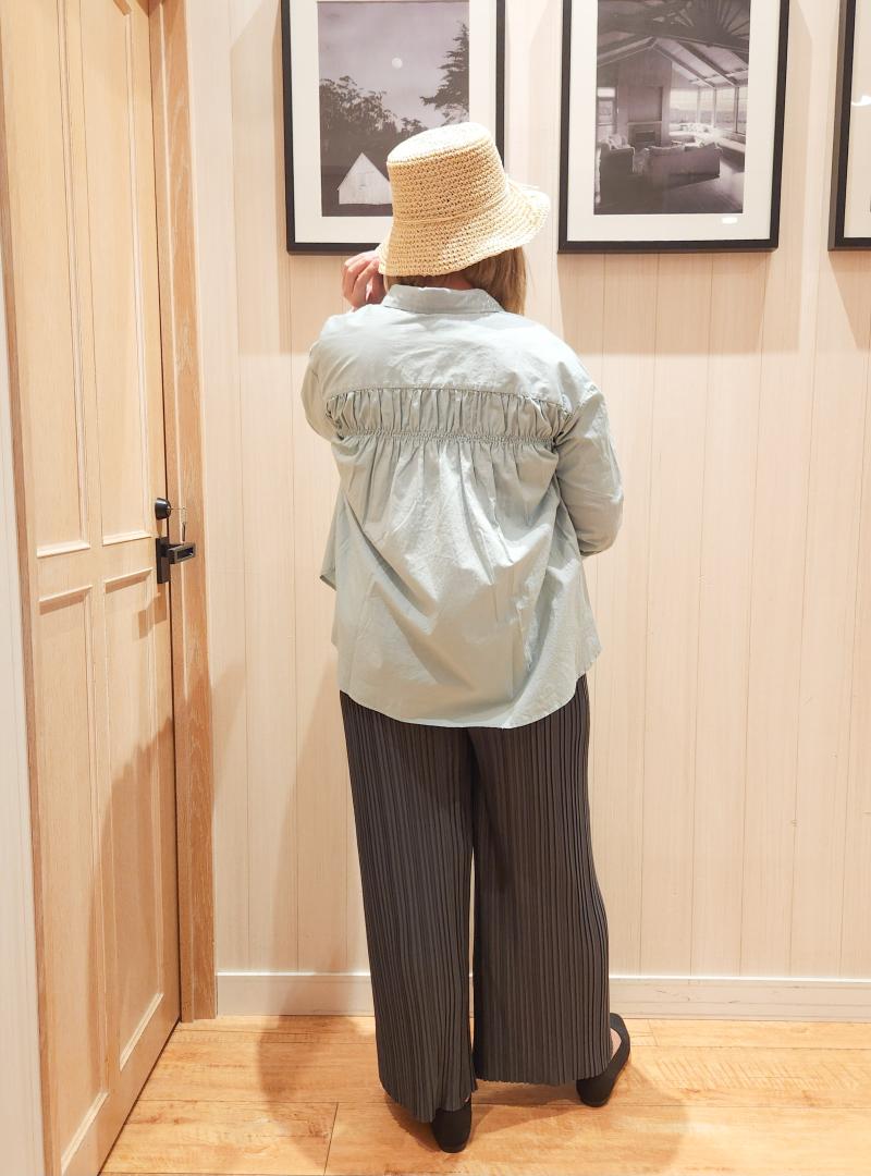 流行りのバックギャザーシャツでカジュアルコーデ♪