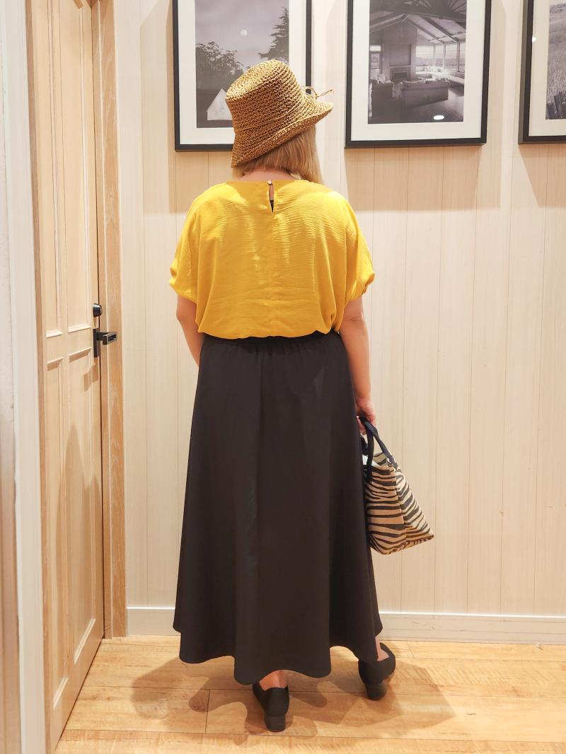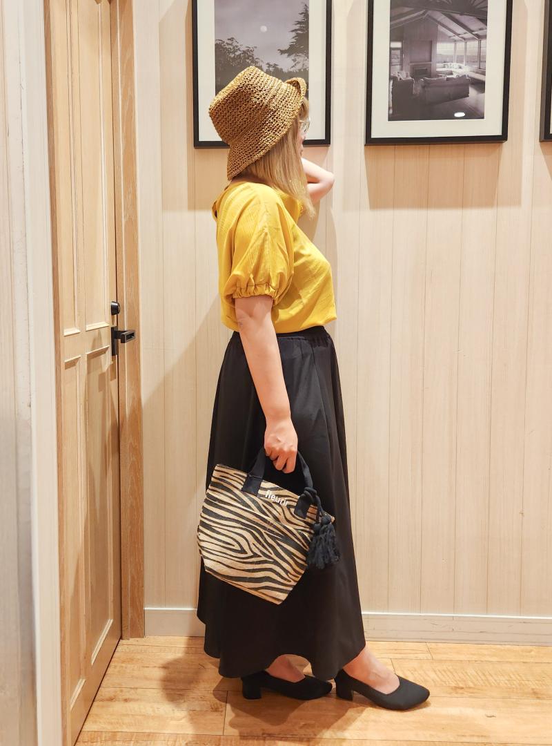 帽子とトートバッグで夏感のあるコーデにしてます。