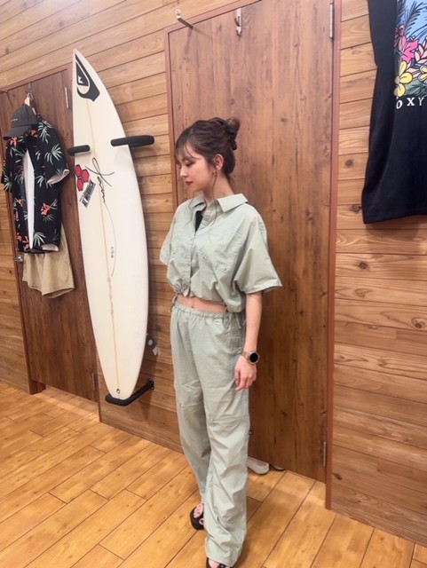 めずらしいショート丈シャツ型のラッシュガード。ドルマンスリーブで二の腕をカバーしつつ動きやすさも◎。裾の両サイドにはドローコードがついているので、シルエットを替えることもできます。❤