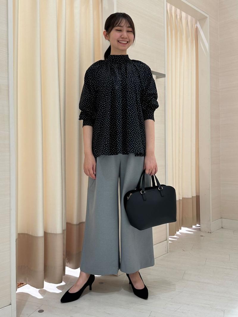 顔回りに華やかな印象を与えるボリュームブラウス。